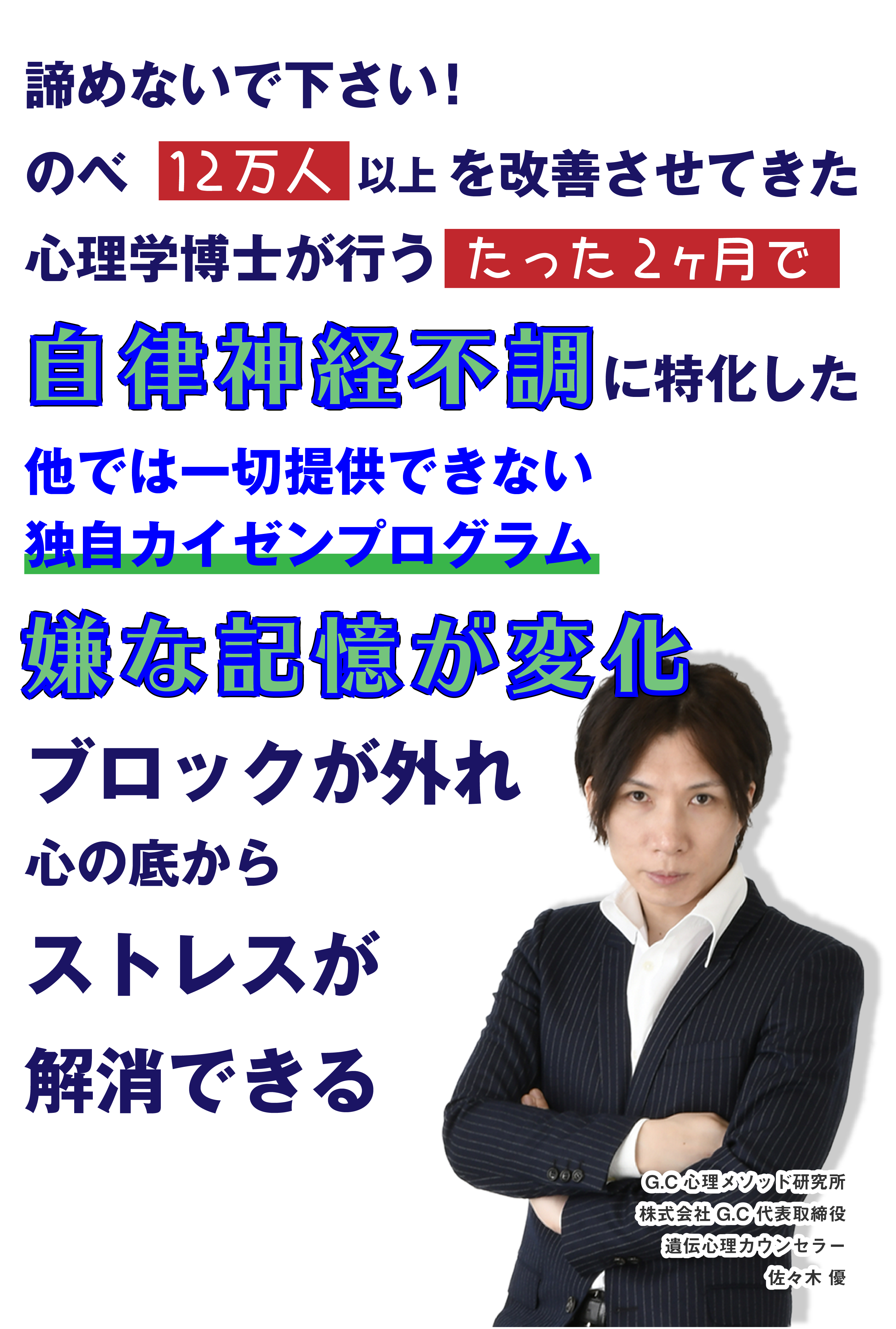 数日すると、薬の副作用か何か昼間から眠気が激しく昼夜逆転の生活になり、もう本当にダメだと感じていました。本当にアテがなく悩んでいた頃、GC心理メソッドの研究所を知りました。