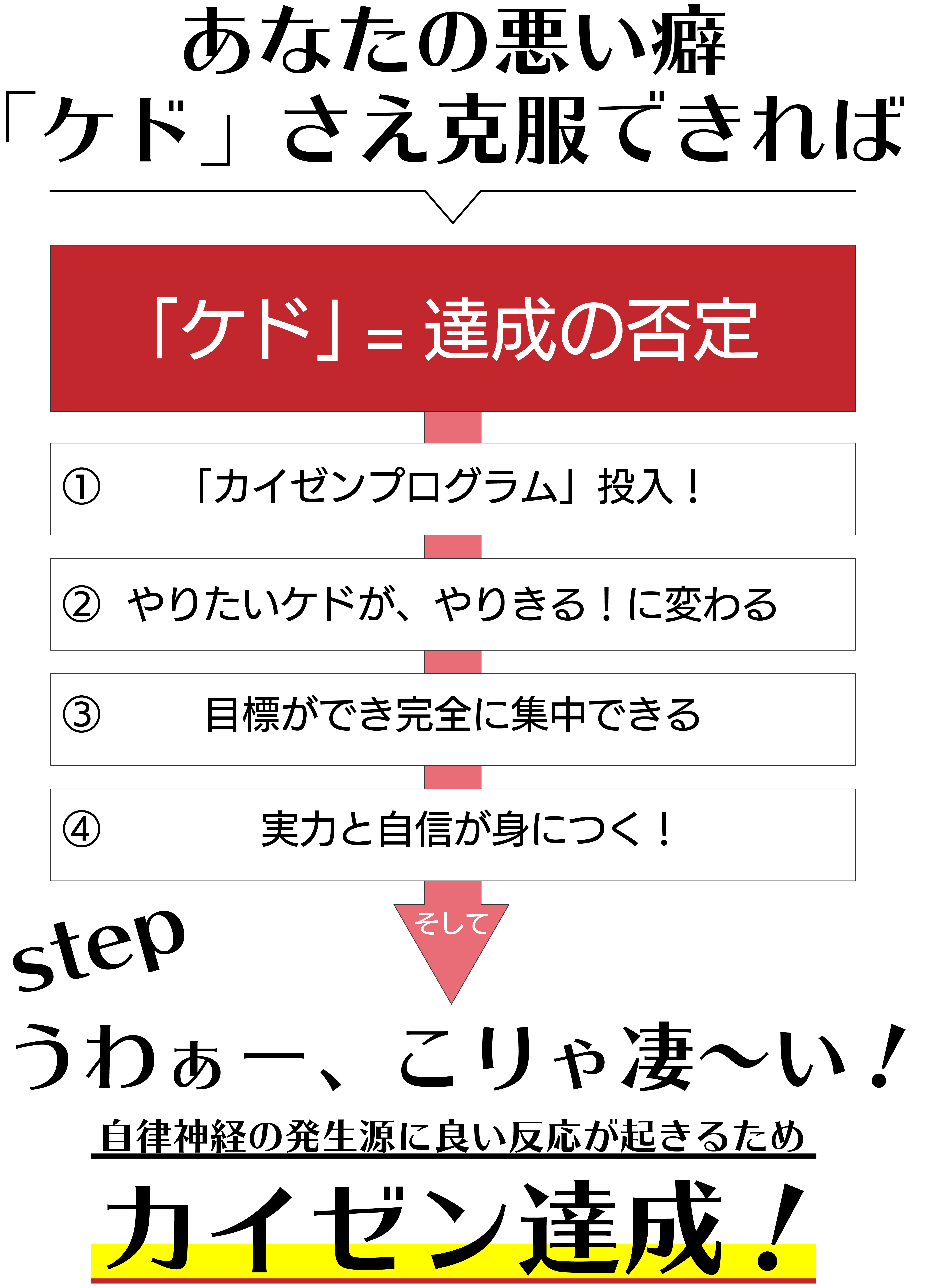 あなたの近くにいる社会愛者は一旦置いておいて、一回きりの人生、目に見える証拠にこだわる人、目に見えない可能性に生きる人。『あなた自身はどうなりたいですか?』という事を潜在意識は、問いかけてくれています。「ケド」の多用は、未来の可能性をさえぎる独特の思考回路が働いている証です。『ケド』というワードは自律神経回復への不利益だけではなく、人生そのもののに悪い影響をもたらしかねません。不幸の原因と言っても過言ではないでしょう。どんなに素晴らしい人、成功している人もケドを使う方は、必ず何か人生の重要な点でつまづいてしまっているという事をうかがい知ることができます。というわけで、自律神経がよくならない起伏が激しいなどのパーソナリティの改善以前にやらなくてはいけない基礎工事として「ケド」を発生させない思考回路にアップロードすることを強くオススメします。